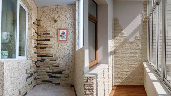 Один из вариантов декоративной штукатурки. Отделка балкона внутри таким материалом, красива и долговечна