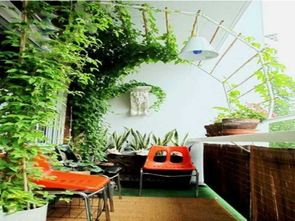 Если ни один из приведенных выше способов оформления балкона вас, что называется «не греет», возможно вам понравится идея превратить его в сад. Ну, пусть не в сад, но в садик. Такой вариант обустройства может быть реализован на открытом балконе, но тогда высаживать необходимо однолетники, быстро дающие зелень.