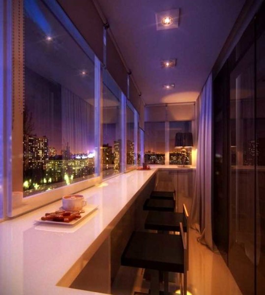 Сделать на балконе или лоджии столовую зону несложно — широкий подоконник под рамами остекления, высокие стулья, соответствующее освещение