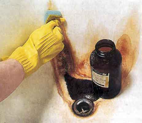 Если используется жидкость, то ею смачивают пятна ржавчины и спустя 10 минут обрабатывают их щеткой.
