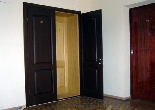 В многоквартирных домах также можно встретить входные деревянные двери, фото-примеры которых здесь размещены. В сравнении со своими «соратниками» из металла, они имеют более высокие показатели тепло- и звукоизоляции, а также большие преимущества в дизайне. Здесь, как и в частных домах, практикуется установка двойных дверей — наружных и внутренних.