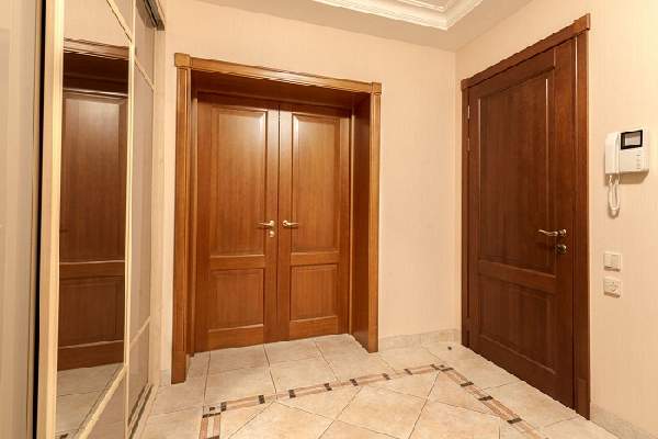 Хотя двери в квартиру не нуждаются в усиленной защите от уличных атмосферных явлений, все же двойная их конструкция будет намного практичней. Внутренняя входная дверь в квартиру деревянная послужит дополнительной защитой от шумов в парадном, а также преградой для взломщиков и попадания в помещение неприятных запахов и холодного воздуха. Внутреннее полотно должно соответствовать размерам внешнего, а также дизайну и цветовой палитре интерьера прихожей. Двойные двери могут быть установлены как на одной раме, так и на отдельных.