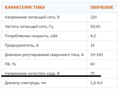 Если у вас в поселке напряжение низкое, обратите внимание на этот показатель. Он прописывается обычно просто как «напряжение» и через тире проставляют минимальное и максимальное значение: например 150-245 В. Иногда можно увидеть такую запись: 220 В +10%, -30%. Это значит, что нормально аппарат будет варить, если питающее напряжение будет находится в пределах от 154 В до 244 В (220 В — 30% = 154 В, и 220 В + 10% = 244 В).