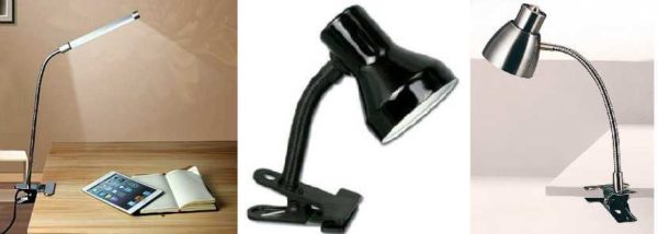 Как видите, не так много вариантов. Но это самое начало, есть еще много других факторов, которые надо будет учесть. Если говорить о «народных» предпочтениях в выборе крепления для настольной лампы, то наиболее популярны два способа — на подставке и струбцина. Они более удобны. Светильники «прищепка» обычно недорогие, но они быстро теряют «хватку», со временем хуже держатся. Если вам нужна именно недорогая лампа, примерно на год, полтора — это ваш вариант.