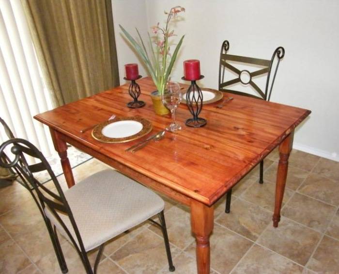 Сосна является мягкой древесиной и не должна применяться в столах, на которые предполагается ставить что-то горячее, а также в комнатах с повышенной температурой, слабой вентиляцией, возле обогревателей или батарей.