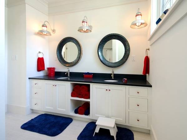Обратите внимание на маленькие «медицинские» зеркала с подсветкой, которые могут по-разному устанавливаться в ванной и обеспечивают максимум комфорта при нанесении макияжа или выполнении других личных процедур.