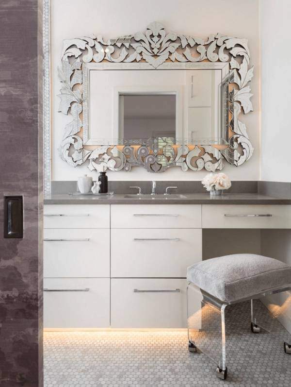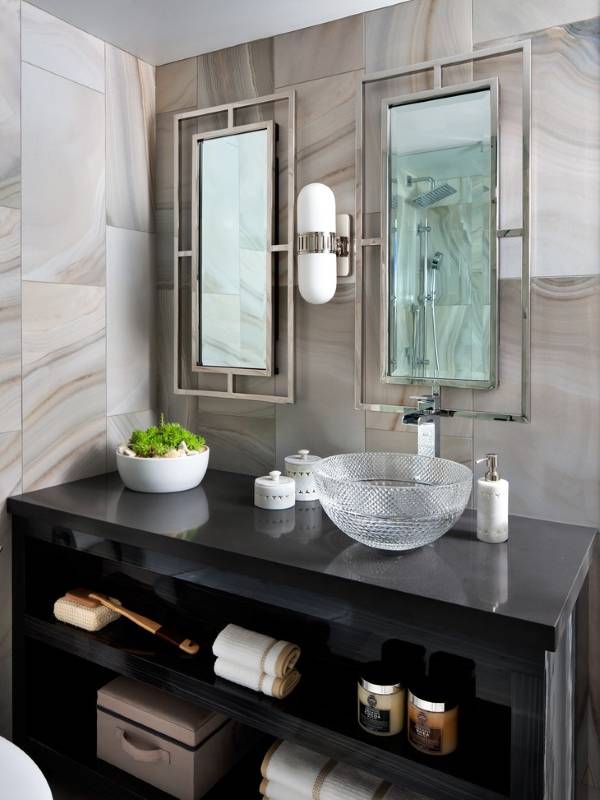 Красивое, функциональное или простое, но стильно подобранное зеркало в ванную комнату способно улучшить её дизайн в разы. Предлагаем вам перед покупкой рассмотреть различные варианты форм, размеров и декоративных отделок зеркал для ванной, чтобы выбрать ту модель, которая идеально дополнит пространство. Сделать это намного сложнее, чем кажется, но приведенные в этой статье фото ванных комнат и практические советы по выбору зеркал, помогут вам.