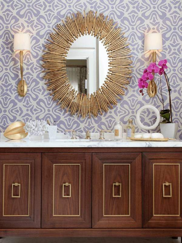 Красивые зеркала в металлической оправе чаще всего можно увидеть в комнатах в классическом стиле. Их блеск помогает создать в интерьере ванной luxury эффект.