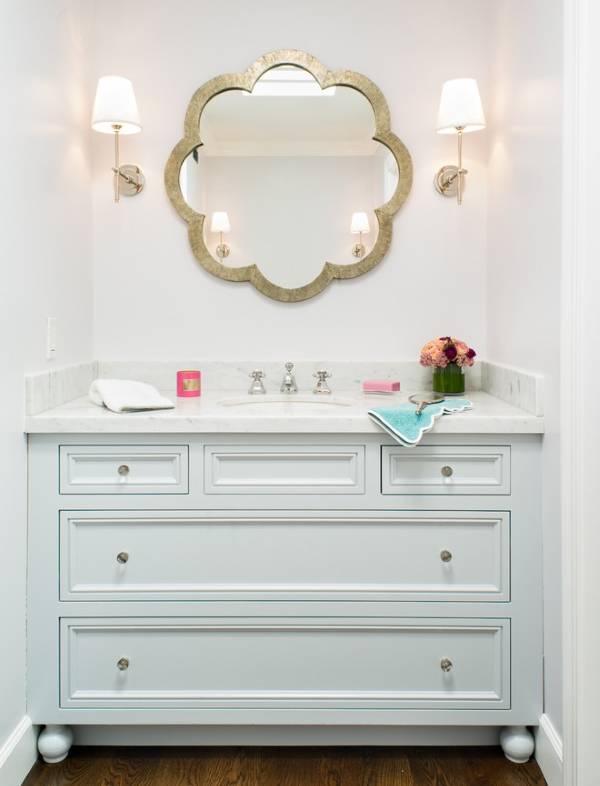 Следующие фото зеркала в ванной комнате демонстрируют, как этот предмет интерьера может решать разные дизайнерские задачи. Присмотритесь: может какая-то из этих ванных имеет общие черты с вашей?