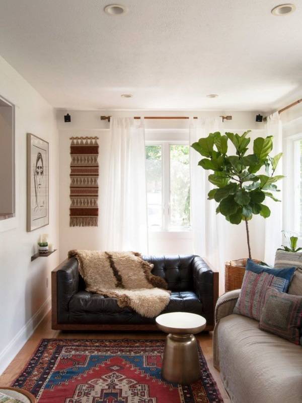 А теперь давайте посмотрим на реальные фото гостиных, которые украшены красивыми шторами с разнообразными расцветками и узорами. С чем же они сочетаются? Почему для них был выбран именно такой стиль, цвет или узор?