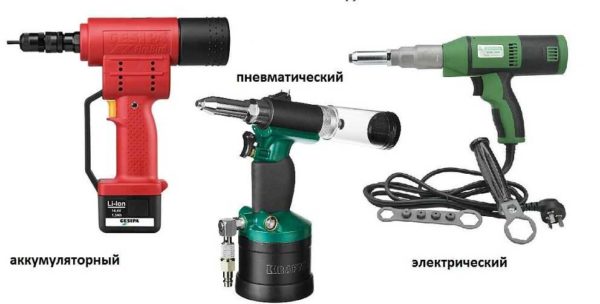 Заклепочники могут быть ручными, аккумуляторными, электрическими, гидравлическими