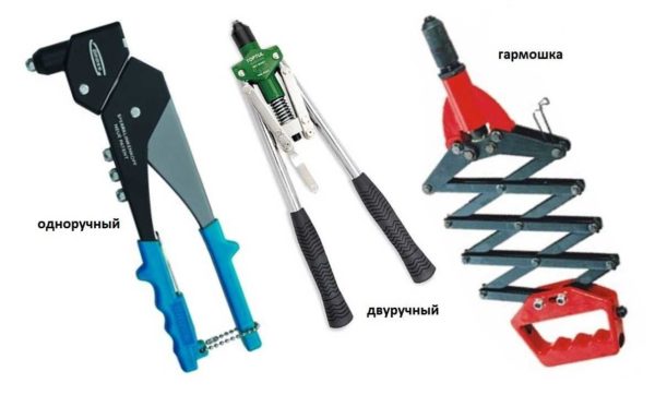 Виды ручных заклепочников: одноручный, двуручный, гармошка