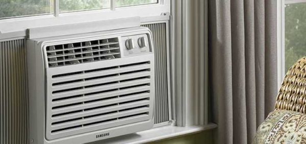 - Оконные — устанавливаются вместо части рамы. В последние годы такие агрегаты потеряли былую популярность — они сильно шумят, закрывают часть окна, да и внешний вид имеют не самый привлекательный. Достоинства: это самый бюджетный вариант, который имеет продуктивное охлаждение. Неплохой эконом-вариант для дачи, офиса или небольшого производственного помещения.