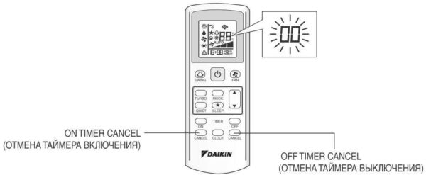 Время включения и отключения сплит системы задается с пульта