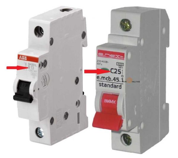 - С буквой «B» на корпусе подходят для дач, домов селах и поселках, которые получают электропитание через воздушки. Также их можно ставить в квартиры старых домов, в которых реконструкция внутридомовой электросети не производилась. Эти защитные автоматы далеко не всегда есть в продаже, стоят немного дороже категории С, но могут доставляться под заказ.