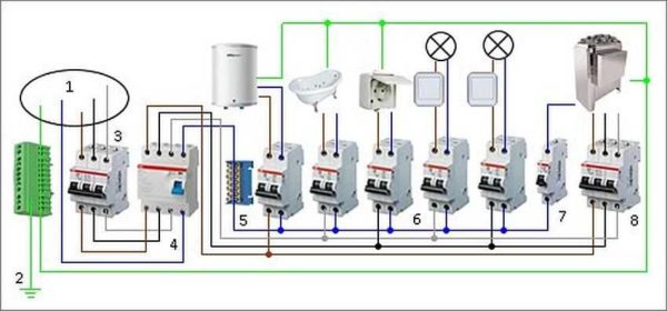 Просто в аварийных ситуациях — при коротком замыкании или пробое изоляции — на нулевой провод может попасть фазное напряжение. Если на линии питания установлен однополюсный аппарат, он отключит фазный провод, а ноль с опасным напряжением так и останется подключенным. А значит, остается вероятность поражения током при прикосновении. То есть, выбор автомата прост — на часть линий ставятся однополюсные выключатели, на часть — двухполюсные. Конкретное количество зависит от состояния сети.