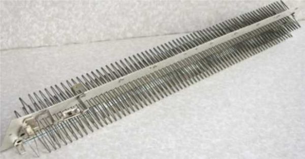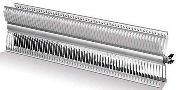- Игольчатые. Это лента из диэлектрика, в которую вмонтированы петли-иголки из сплава хрома и никеля. Поверхность нагревателя залита слоем защитного лака. Петли торчат с двух сторон, нагреваются очень быстро, так же быстро остывают и это плюс таких обогревателей — легко поддерживать заданную температуру. Второй положительный момент — низкая стоимость. Электроконвекторы с нагревателями игольчатого типа стоят на треть дешевле. недостатки — нельзя использовать при повышенной влажности, хрупкость игл приводит к тому, что такой греющий элемент быстро выходит из строя.