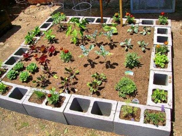 Ограда для высоких грядок из керамзитобетонных блоков
