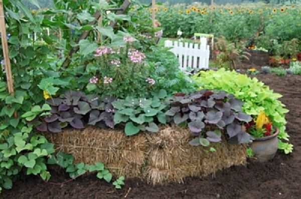 Ограждение грядок из соломы