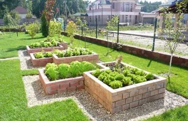 Кирпичные высокие грядки для декоративного огорода