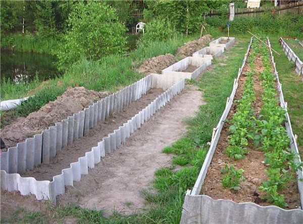 Ограждение грядок шифером