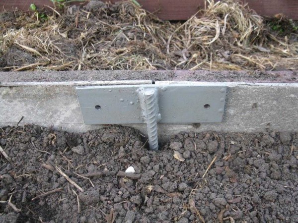 При изготовлении грядок из плоского или волнового шифера тоже возникают вопросы о том, как его закрепить. Самый простой способ — прикопать. Но это неэкономно: придется минимум на 10 см сделать полосы шире и все равно нет гарантии, что весной шифер не «поплывет». В раскисшей земле его просто выдавит массой. Поправить можно, но это лишнее время и усилия.