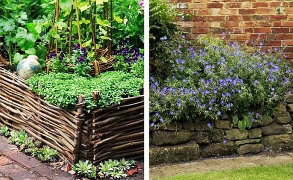 Обрамление для грядок можно сплести из свежих веток или выложить из камней