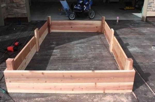 Ограждение для высоких грядок из дерева делать недолго, но еще проще, соединять доски встык, а для прочности прибить металлические уголки (на фото ниже).
