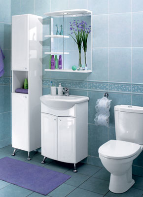 • Положение зеркала, полочки и шкафчика, как и высота ванны с ножками, определяются ростом пользователей.