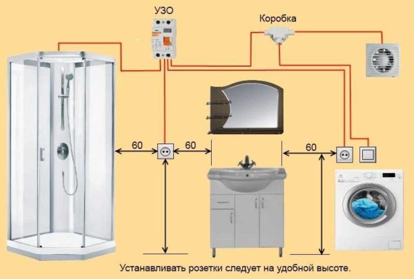 Как можно расположить розетки в ванной