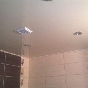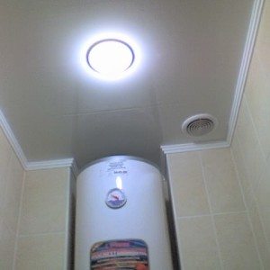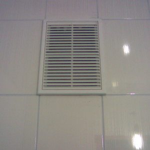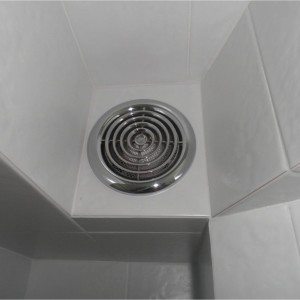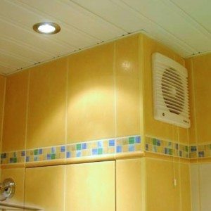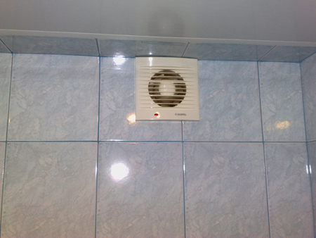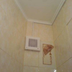 • Если здание одноэтажное, то часто монтируется Пример использования принудительной вентиляции в ванной комнате в потолке, в этом случае воздух выводится из комнаты через чердак на крышу.