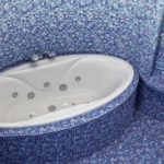 Акрил — прочный химически нейтральный полимер с широкой областью применения. Делают из него и ванны. Причем акриловые ванны выпускают самых разных форм и размеров. Именно они бывают круглыми, овальными, угловыми, сложных форм (в виде фасолины, например). Стенки могут быть не прямыми, а округлыми, с плавными изгибами. Дно может быть со ступеньками, нередко встречаются сиденья, выемки, подлокотники и другие «излишества», которые делают эксплуатацию более удобной. В ванный из акрила встраивают различные распылители и насадки для гидромассажа.