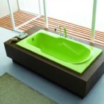 Акрил — намного менее теплоемкий материал, чем сталь и чугун. Это значит, что греется он быстрее. И это — еще один плюс. Следующее положительное качество — он легкий. Ванну любого размера из акрила легко может переносить один человек. Еще один положительный момент: размер ванны из акрила можно заказать. Материал пластичный, ему можно придать любую форму, а технология такова, что можно сделать емкость и большую и маленькую.