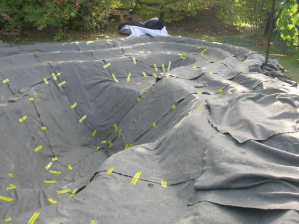 - При создании искусственных водоемов на дно кладут геоткань. Она более прочная, лучше будет армировать котлован.