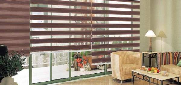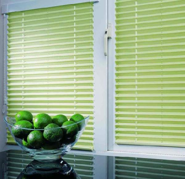 • Тканевые горизонтальные жалюзи. Так называемые жалюзи-плиссе чудесно вписываются в любой интерьер, хорошо защищая комнату от солнца.