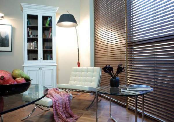В гостиную комнату впишутся межрамные деревянные жалюзи. Они создают ощущение уюта, что так важно в этой комнате.