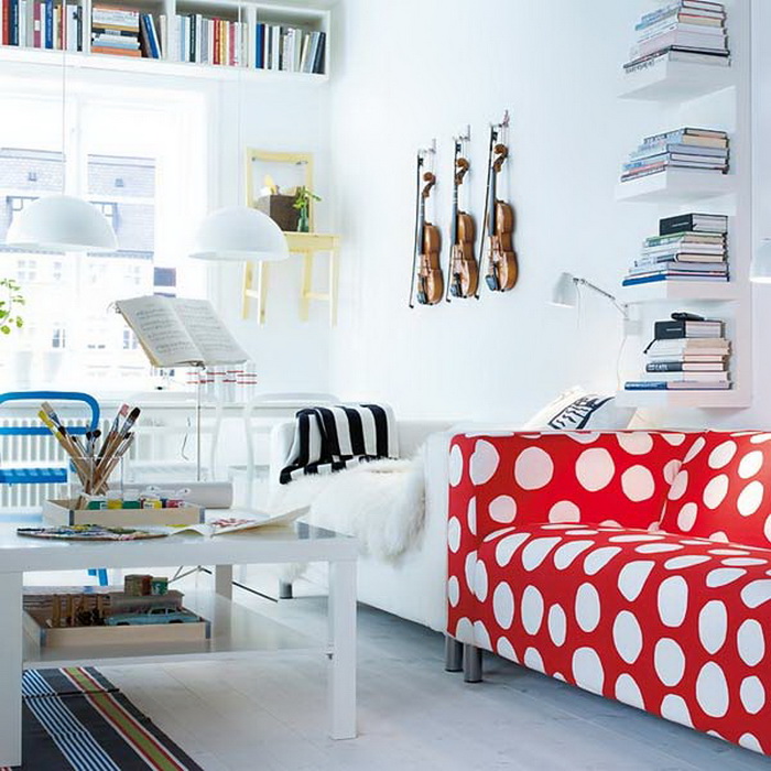Простота форм и сочетание разнообразных цветов делает такой орнамент приемлемым в любом интерьере. Актуальны узоры любого размера, любых фактур и цветов. Классический бело-черный горох выглядит солидно, а в разноцветный горошек – весело и молодежно.