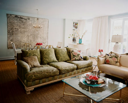 Диван и кресла должны быть с мягкой обивкой в цветочек, а также однотонные, пастельных цветов. Если выбран вариант дивана с однотонной обивкой, тогда его смело можно дополнять цветастыми подушками. Кстати гостиная винтаж приветствует небольшие, компактные диваны, рассчитанные на несколько человек. Кресла, как в прочем и диван могут располагаться на высоких, резных ножках, кованные ажурные вставки также игнорировать не рекомендуется.