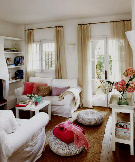 Но все же, в идеальной винтажной гостиной, излишние контрасты присутствовать не должны. Традиционно используется один фоновый цвет: бежевый или белый, а уже его дополняют несколькими близкими по подтону оттенками.