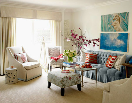 В таком помещении, обязательно нужно найти место для живых цветущих растений, они значительно оживят обстановку и помогут уйти от музейного ощущения. Да, и еще, чтобы комната не походила на музей, важно соблюдать меру. Если мебель покрыта цветочным принтом, то обои лучше выбрать однотонными, и в обратном порядке, стены цветастые — диван и кресла, однотонные.