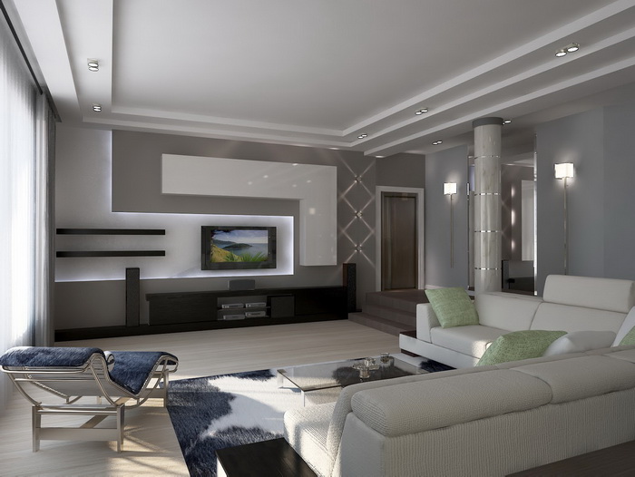 Светло серые стены и прекрасно подобранный декор, делают дизайн гостиной в стиле модерн по – настоящему живым.