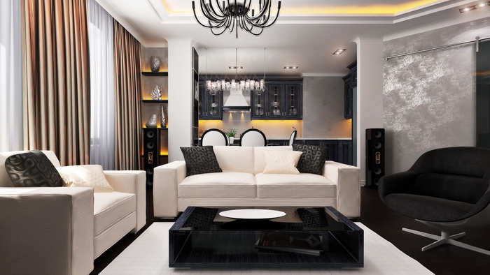 Лучший вариант совместить высокотехнологичные бытовые приборы и классическое оформление интерьера, выбрать дизайн гостиной в стиле модерн. Стиль модерн позволяет совместить простоту и роскошь, предпочтение отдается плавным линиям, временами даже переходящим в замысловатые орнаменты, и свободной планировке. Модерн тесно связан с природой, поэтому при создании интерьера нужно использовать натуральные материалы.