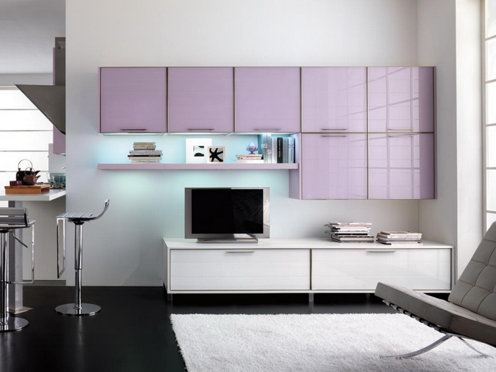Именно в стиле модерн впервые начали внедрять корпусную мебель, в виду ее легкости и функциональности. Белая расцветка мебели, прекрасно выделяется на фоне стен.