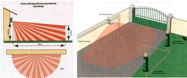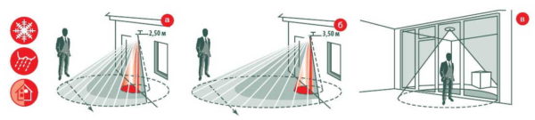 В зависимости от места установки и требуемой зоны обнаружения выбирают радиус обзора