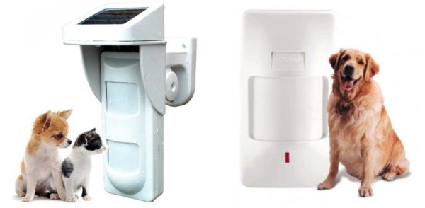 - Инфракрасные датчики движения. Реагируют на тепло, выделяемое телом теплокровных существ. Относятся к пассивным устройствам, так как сам ничего не вырабатывает, только регистрирует излучение. Эти датчики реагируют на движение животных в том числе, так что могут быть ложные срабатывания.