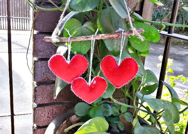 Яркие сердца из фетра на веточках.