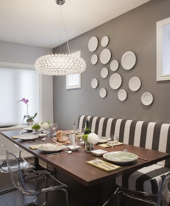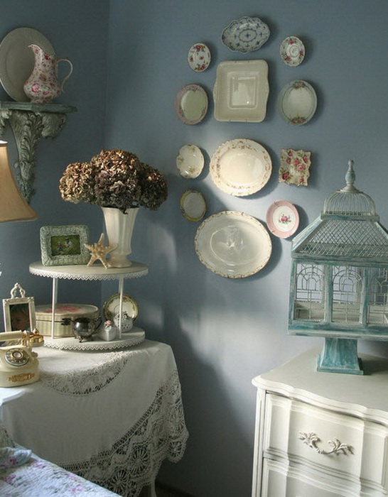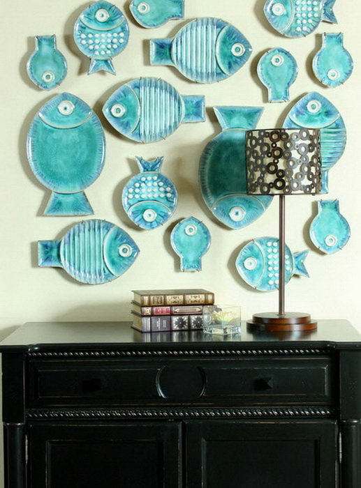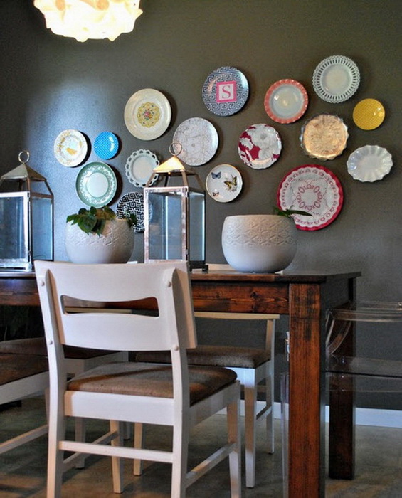 Если у Вас пустые стены, то есть проверенный и испытанный способ — повесить тарелки на стены. Тарелки не совсем обычные, они будут содержать определенный рисунок. Тарелки украсят Вашу комнату и будут являться необычайным дизайнерским решением. Они могут стать прекрасной альтернативой картинам и панно.