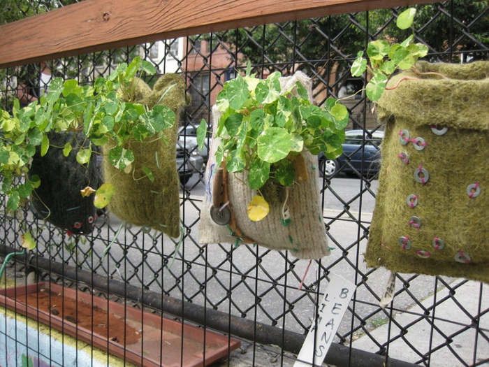 Скоро весна и наша комнатная зелень переберётся на балконы и лоджии. В качестве балконных грядок интересно будут смотреться разнообразные вязанные и сшитые кашпо. Не забудьте только ёмкости с растениями сделать не промокаемыми.