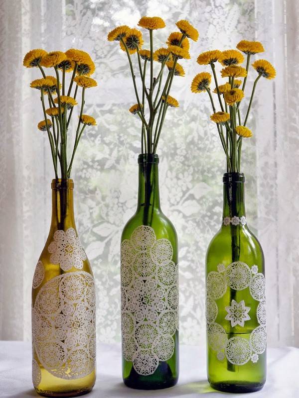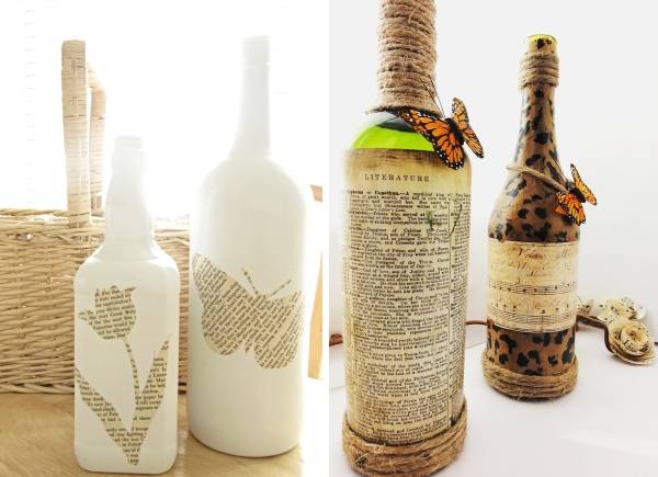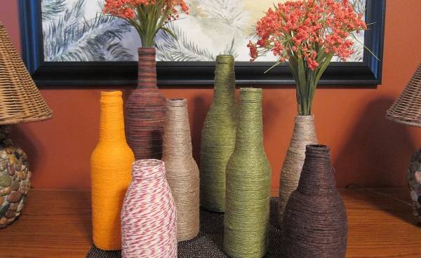 А вы знали, что пустые стеклянные бутылки еще могут послужить вам как красивый и полезный декор для дома? Не имеет значения, это были ёмкости от вина, пива, коньяка, колы или других напитков, — декорирование бутылок позволяет превратить их все в один красивый набор ваз, светильников или просто украшений для стола. С применением самых обычных материалов и воображения любые бутылки можно превратить в поистине потрясающие вещи!