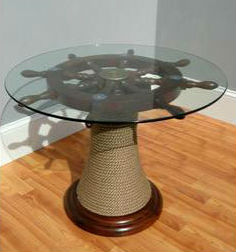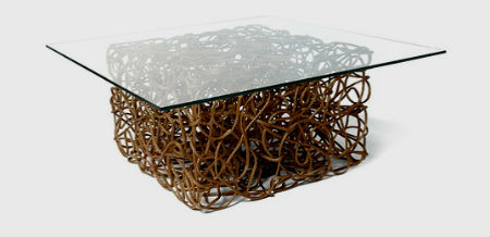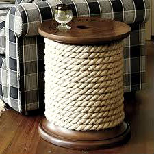 4. Благодаря веревке или канату, можно изготовить необычные основания для тумбочек или журнальных столиков. Такие столики будут являться самым настоящим украшением интерьера.